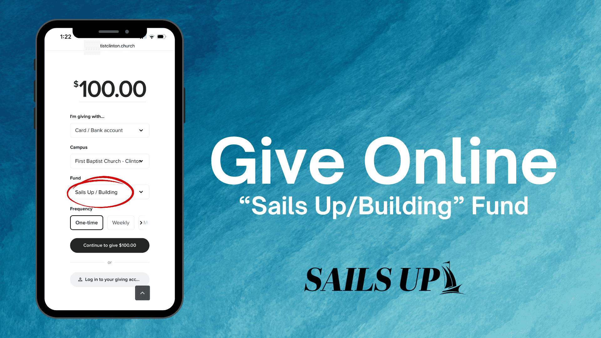 - Give Online by selecting “Sails Up/Building”.